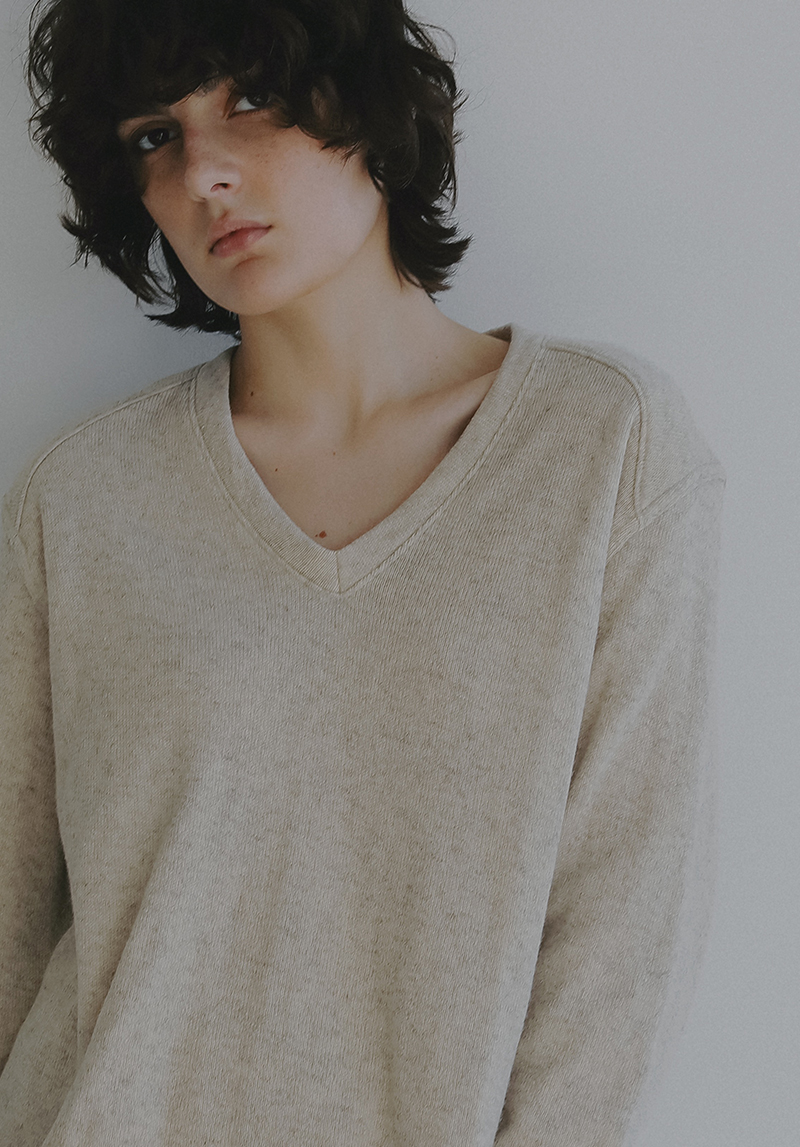 淡いニュアンスカラーが肌に溶け込む。