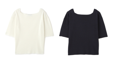 ボートネックが鎖骨周りを美しく上品に見せてくれるニットトップス。